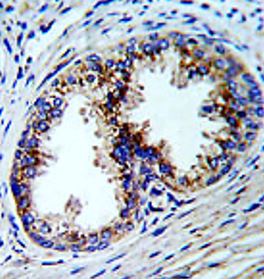 Immunohistochemistry: Formalin-fixed and paraffin-embedded Human prostate carcinoma stained with ARG55094 anti-GOLPH3 antibody.