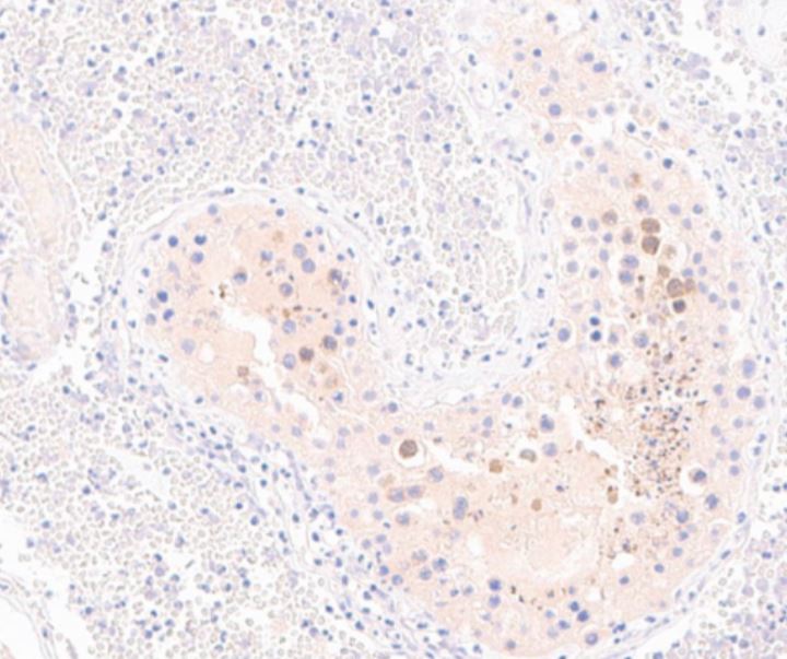 Immunohistochemistry: Formalin-fixed and paraffin-embedded Human testis tissue. Antigen Retrieval: Heat mediation was performed in Citrate buffer (pH 6.0). Tissue section was stained with ARG56536 anti-GPX4 antibody at 1:80 dilution.