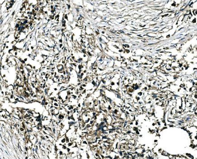 Immunohistochemistry: Human breast cancer stained with ARG45218 anti-GRHL2 antibody at 2 μg/ml dilution.