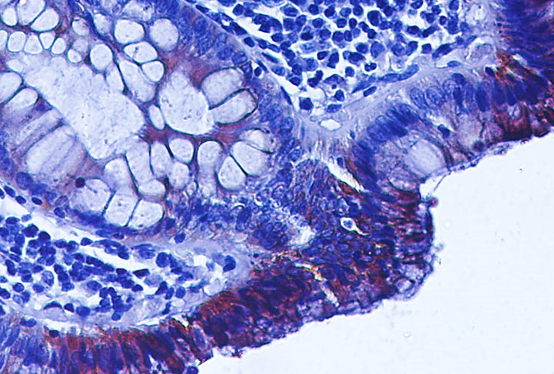 Immunohistochemistry: Paraffin-embedded Human colon stained with ARG43825 anti-GSK3 beta phospho (Ser9) antibody at 1:50 dilution.