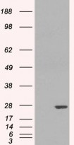 Western blot: 35 µg of human kidney lysate stained with ARG63784 anti-GST3 / GST pi antibody at 0.01 µg/ml dilution.