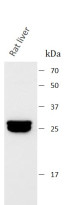 Western blot: Rat liver stained with ARG45139 anti-GSTA1 antibody at 0.5 μg/ml dilution.