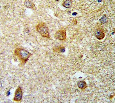 Immunohistochemistry: Formalin-fixed and paraffin-embedded brain tissue stained with ARG55722 anti-GTSE1 antibody.