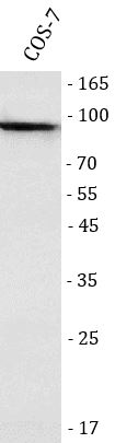 Western blot: COS-7 stained with ARG45904 anti-Germinal Center Kinase / GCK antibody at 0.5 μg/ml dilution.