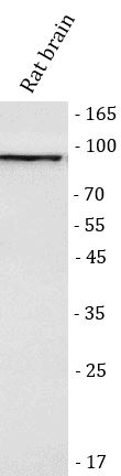 Western blot: Rat brain stained with ARG45904 anti-Germinal Center Kinase / GCK antibody at 0.5 μg/ml dilution.