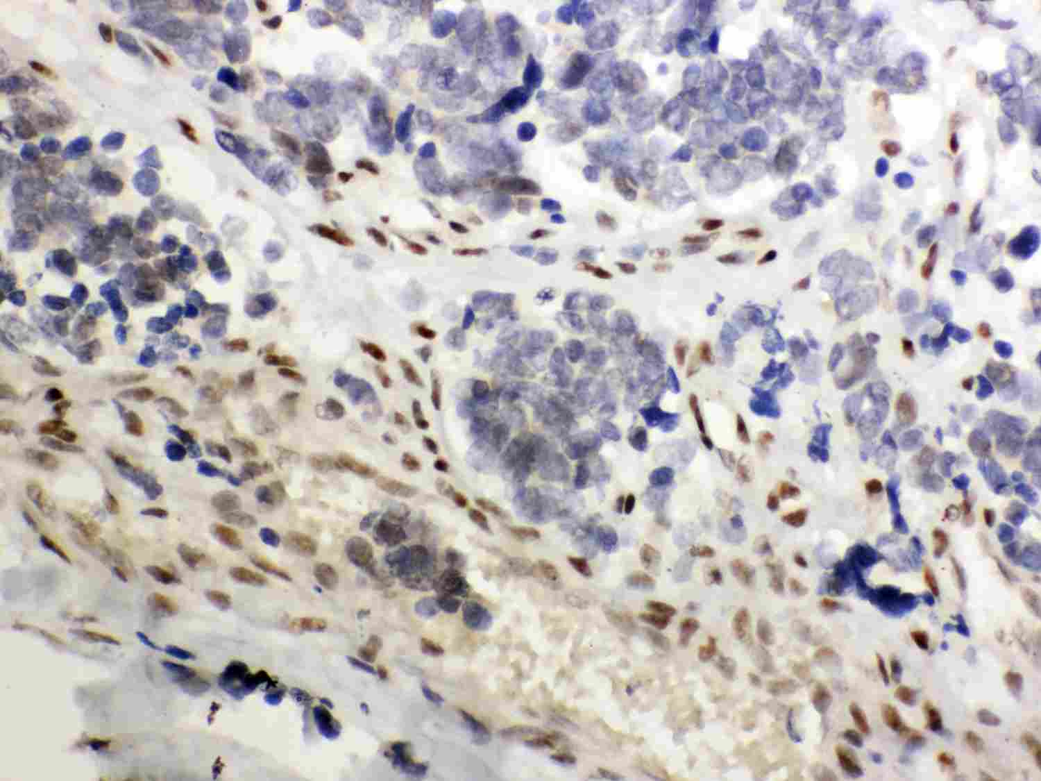 Immunohistochemistry: Paraffin-embedded Human lung cancer tissue stained with ARG40891 anti-Glucocorticoid Receptor antibody.