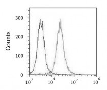 Flow Cytometry: K562 cells were fixed with 2% paraformaldehyde (10 min) and then permeabilized with 90% methanol for 10 min. The cells were then incubated in 2% BSA to block non-specific protein-protein interactions followed by ARG58926 anti-HBA2 / Hemoglobin Subunit Alpha 2 antibody (right histogram) at 1:25, 60 min at 37°C or an isotype control antibody (left histogram), followed by incubation with DyLight® 488 labelled secondary antibody.