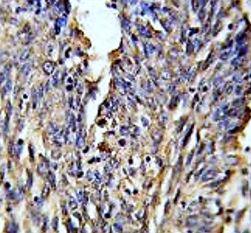 Immunohistochemistry: Formalin-fixed and paraffin-embedded Human lung carcinoma stained with ARG58926 anti-HBA2 / Hemoglobin Subunit Alpha 2 antibody antibody.