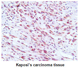 Immunohistochemistry: Paraffin embedded sections of Kaposi's sarcoma tissue stained with ARG56983 anti-HHV8 ORF73 antibody [4C11] at 1:50 for 2 hours at RT. Antigen Retrieval: Boil tissue section in 0.1M Sodium citrate buffer (pH 6.0) for 20 min.