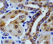 Immunohistochemistry: Paraffin-embedded Human kidney tissue was fixed with formaldehyde and blocked with 3% BSA for 0.5 hour at RT. Samples were stained with ARG58003 anti-HINT1 antibody at 1:25 dilution for 60 min at 37°C. Antigen Retrieval: Heat mediation was performed in Citrate buffer (pH 6.0).