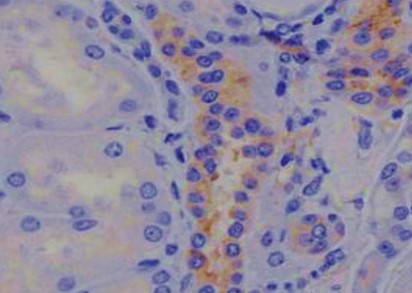Immunohistochemistry: Human Kidney stained with ARG44673 anti-HIP1 / Huntingtin Interacting Protein antibody at 5 µg/mL dilution.