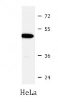 Western blot: 35 µg of HeLa cell lysate stained with ARG42162 anti-HOXC10 antibody at 1:1000 dilution.