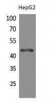 Western blot: HepG2 cell lysate stained with ARG66435 anti-HOXD3 antibody.