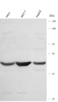 | Storage Instruction | For continuous use, store undiluted antibody at 2-8°C for up to a week. For long-term storage, aliquot and store at -20°C or below. Storage in frost free freezers is not recommended. Avoid repeated freeze/thaw cycles. Suggest spin the vial prior to opening. The antibody solution should be gently mixed before use. |
