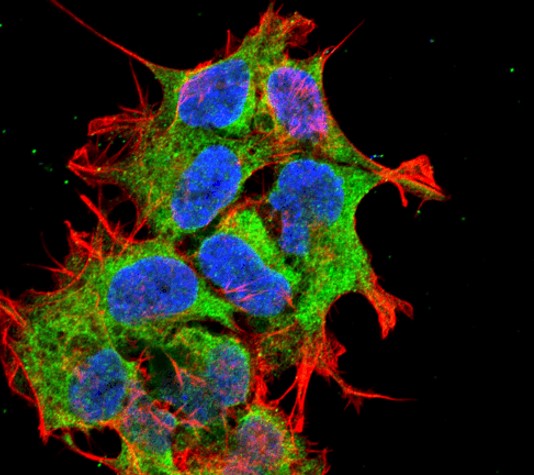 Immunofluorescence: SK-N-BE stained with ARG24115 anti-HYOU1 / ORP150 antibody [6E3-2C3] at 1:100 dilution.
