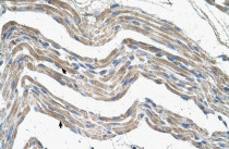 Immunohistochemistry: Paraffin-embedded Human skeletal muscle tissue stained with ARG42154 anti-IDH3A antibody at 4 - 8 µg/ml dilution.