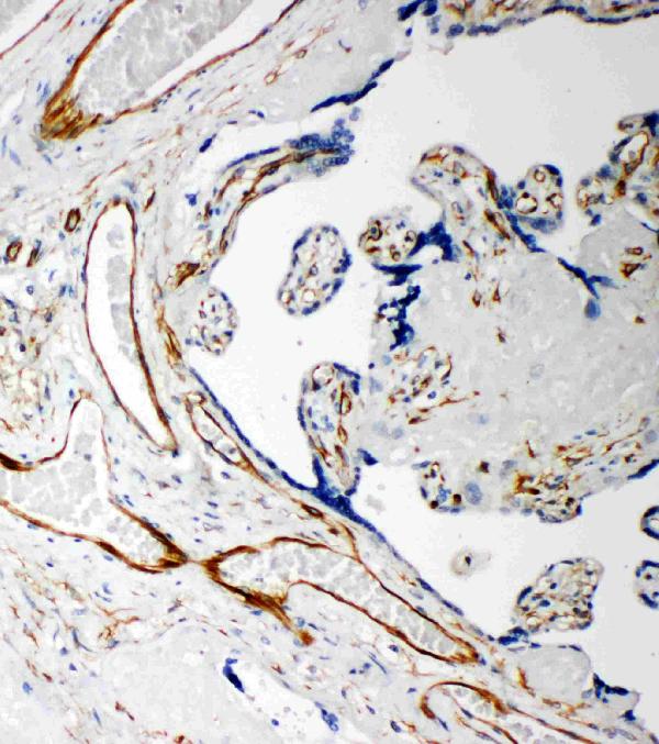 Immunohistochemistry: Paraffin-embedded Human placenta tissue stained with ARG42191 anti-IDS / Iduronate 2 Sulfatase antibody.