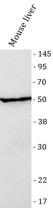Western blot: Mouse liver stained with ARG45898 anti-IFIT2 antibody at 0.5 μg/ml dilution.