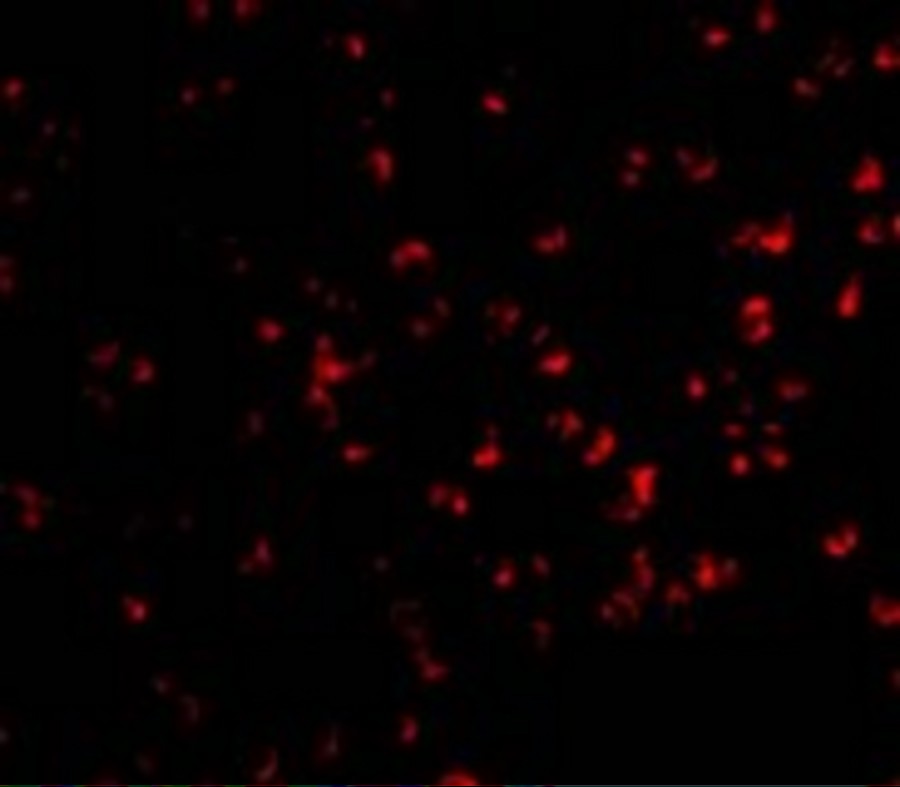 Immunofluorescence: Jurkat cells stained with ARG54650 anti-IKK alpha antibody at 10 μg/ml.