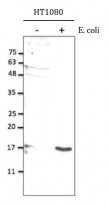 Western blot: HT1080 cells unstimulated or stimulated with inactivated E. coli. 50 µg of cell lysates were stained with ARG42531 anti-IL10 antibody at 1:2500 dilution.