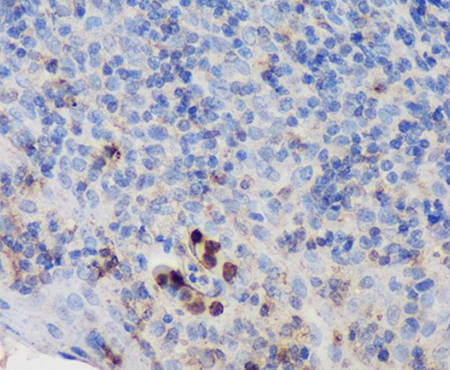 Immunohistochemistry: Rat spleen stained with ARG46720 anti-IL17 / IL17A antibody.