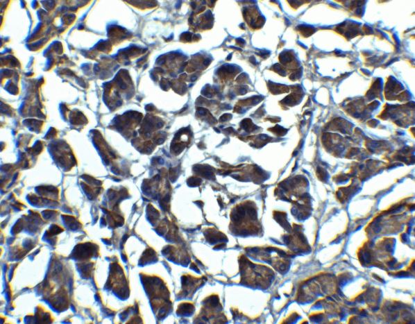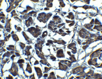 Immunohistochemistry: Paraffin-embedded Human pancreas stained with ARG59349 anti-IL23 antibody at 5 µg/ml dilution.