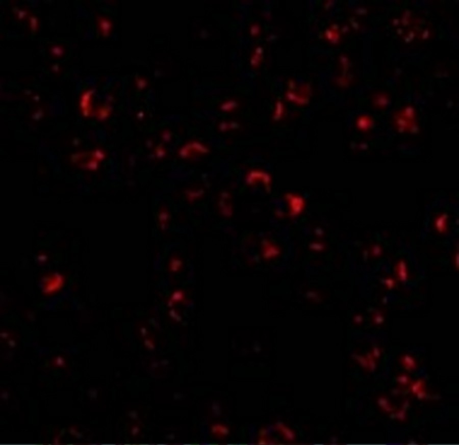 Immunocytochemistry: Raji cells stained with ARG59349 anti-IL23 antibody at 10 µg/ml dilution.