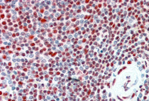 Immunohistochemistry: paraffin embedded Human Spleen. (Steamed antigen retrieval with citrate buffer pH 6) stained with ARG64187 anti-ILF2 / NF45 antibody at 2.5 µg/ml dilution followed by AP-staining.