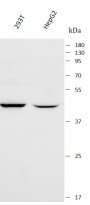 Western blot: 293T and HepG2 stained with ARG44442 anti-ILKAP antibody at 0.5 μg/mL dilution.