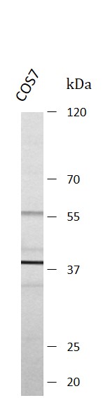 Western blot: COS7 stained with ARG67109 anti-ILKAP antibody.