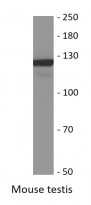 Western blot: 25 µg of Mouse testis lysate stained with ARG40326 anti-IPO5 / RanBP5 antibody at 1:1000 dilution.