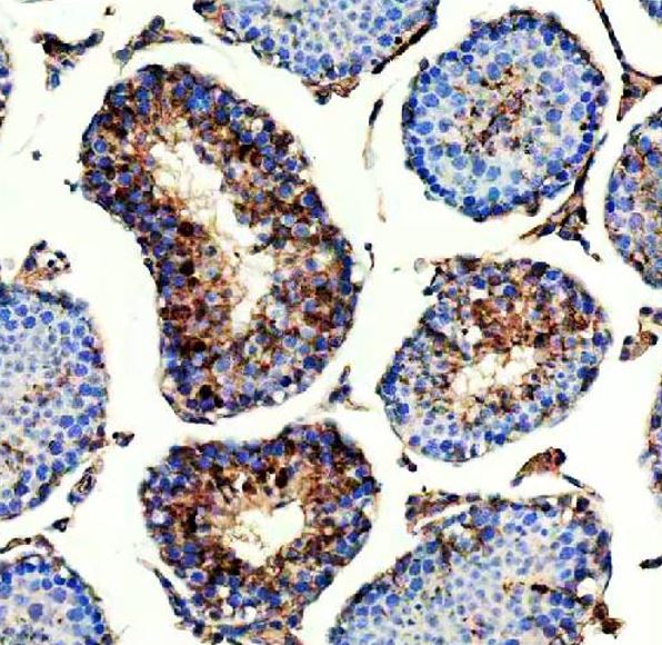 Immunohistochemistry: Mouse testis stained with ARG45900 anti-IQCM antibody at 2 μg/ml dilution.