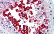 Immunohistochemistry: Paraffin-embedded Human testis tissue stained with ARG41948 anti-JAZF1 antibody at 5 µg/ml dilution.