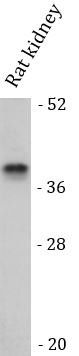 Western blot: Rat kidney stained with ARG46227 anti-JMJD8 antibody.