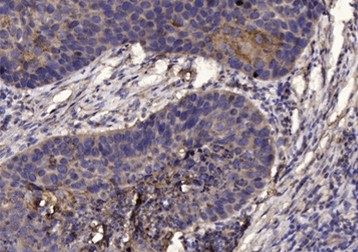 Immunohistochemistry: Human Squamous cell carcinoma stained with ARG67245 anti-Jak3 phospho (Tyr980 / 981) antibody at 1:200 dilution.