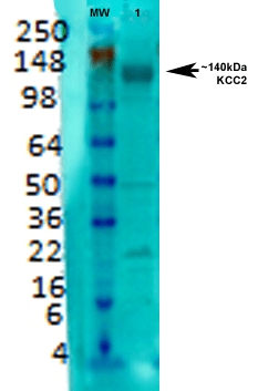 | Immunogen | Fusion protein around aa. 932-1043 of Rat KCC2 |