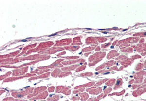 Immunohistochemistry: paraffin embedded Human Heart. (Steamed antigen retrieval with citrate buffer pH 6) stained with ARG64351 anti-KCC3 / SLC12A6 antibody at 2.5 µg/ml dilution followed by AP-staining.