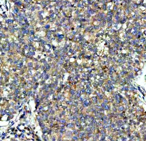 Immunohistochemistry: Human liver cancer stained with ARG45901 anti-KCNA6 antibody at 2 μg/ml dilution.