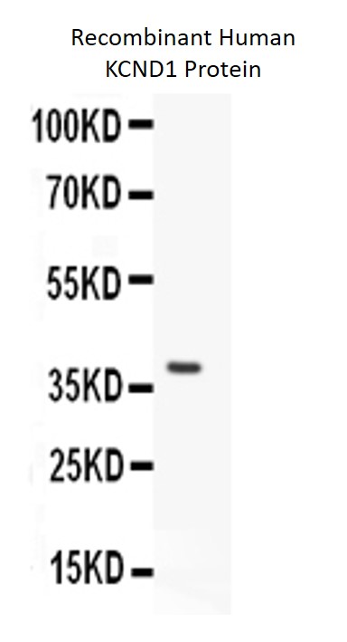 Western blot: 0.5 ng of Recombinant Human KCND1 Protein stained with ARG59896 anti-KCND1 / Kv4.1 antibody at 0.5 µg/ml dilution.