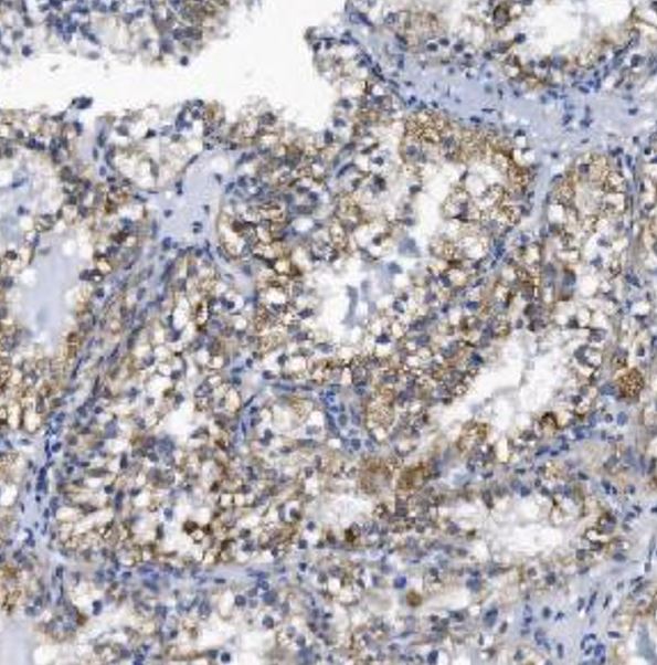 Immunohistochemistry: Human renal clear cell carcinoma stained with ARG45711 anti-KCNQ5 antibody at 2 μg/ml dilution.