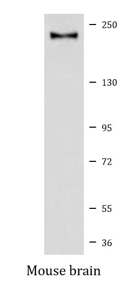 Western blot: 40 µg of Mouse brain lysate stained with ARG43239 anti-KIF21B antibody at 1:1000 dilution.