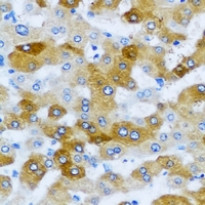 Immunohistochemistry: Formalin-fixed and paraffin-embedded Human liver cancer. Antigen Retrieval: Heat mediation was performed in Sodium citrate buffer (pH 6.0). The section was then incubated with ARG66465 anti-KLK10 / Kallikrein 10 antibody at room temperature and detected using an HRP conjugated compact polymer system. DAB was used as the chromogen. The section was then counterstained with haematoxylin and mounted with DPX.