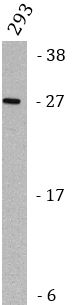 Western blot: 293 stained with ARG46245 anti-KLRA1 antibody.