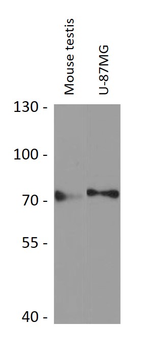 | Storage Instruction | For continuous use, store undiluted antibody at 2-8°C for up to a week. For long-term storage, aliquot and store at -20°C. Storage in frost free freezers is not recommended. Avoid repeated freeze/thaw cycles. Suggest spin the vial prior to opening. The antibody solution should be gently mixed before use. |