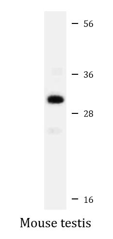 Western blot: 20 µg of Mouse testis lysate stained with ARG41857 anti-LIN28B antibody at 1:2000 dilution.
