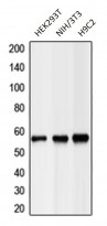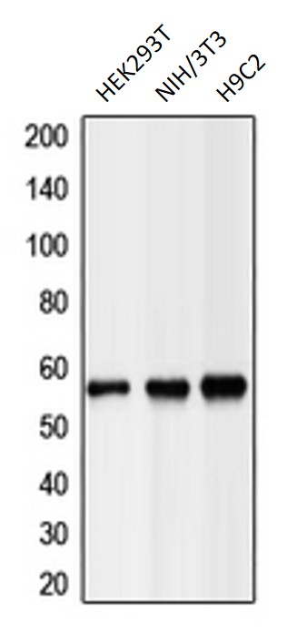 Western blot: HEK293T, NIH/3T3 and H9C2 whole cell lysates stained with ARG66453 anti-LIPC antibody.