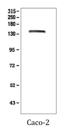 Western blot: 50 µg of sample under reducing conditions. Caco-2 whole cell lysate stained with ARG43047 anti-LRIG1 antibody at 0.5 µg/ml dilution, overnight at 4°C.