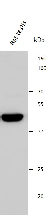 Western blot: Rat testis stained with ARG44574 anti-LYAR antibody at 0.5 μg/mL dilution.