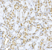 Immunohistochemistry: Mouse kidney stained with ARG65740 anti-Lamin B1 antibody.