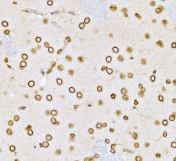 Immunohistochemistry: Rat brain stained with ARG65740 anti-Lamin B1 antibody.